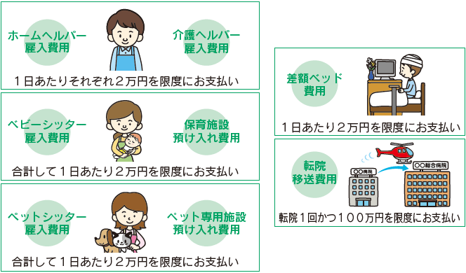 - ※被保険者1名につき、上記それぞれの費用を合計して200万円を限度とします。