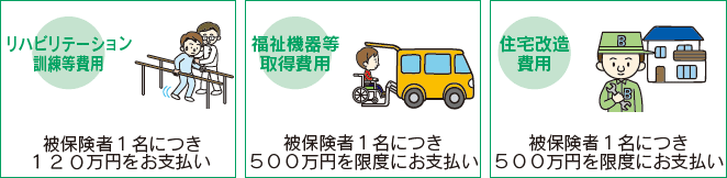 事故によりケガをして重い障害が残ってしまった場合に、リハビリにかかる費用や福祉車両等の購入費用、ご自宅の改造費用等をお支払いします。