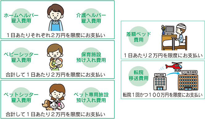 - ※被保険者1名につき、上記それぞれの費用を合計して200万円を限度とします。