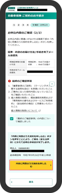 「内容に同意のうえ契約を申し込む」を押下します。