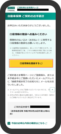 口座振替を選択されたお客さまは、「口座情報を登録する」を押下していただき、口座登録画面に進んでください。