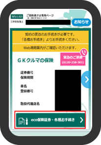 ご契約一覧に表示された該当契約の「eco保険証券・各種お手続き」を押下します。