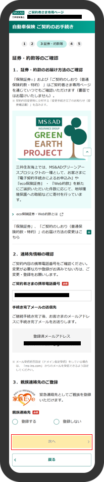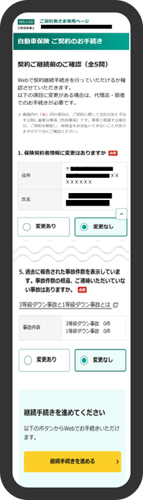 「契約ご継続前のご確認」にご回答いただきます。