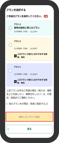 補償内容を確認し、希望するプランを選択します。