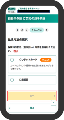 クレジットカード・口座振替のいずれかの払込方法を選択します。