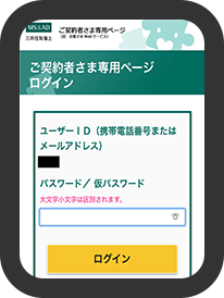 ご契約者さま専用ページログイン画面にてユーザID・パスワードを入力後、「ログイン」を押下します。