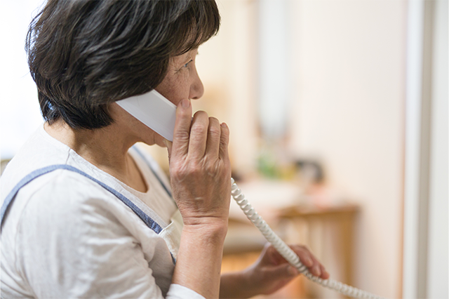 「お金が必要だ」、「お金がもらえる」といったいかにも怪しい電話はもちろん、言葉巧みに家族構成を聞き出したり、子どもや孫の名前、資産に関する情報を言わせたりしようとする電話は、少々強引でも一度切ってしまうのが安全です。その上で、家族など周囲の人に相談してみましょう。1人で対応すると、冷静な時には思いもよらないような判断をしてしまうこともあります。家族とも「なにかあったらすぐ相談する・相談してほしい」とあらかじめ頼んでおくと良いでしょう。