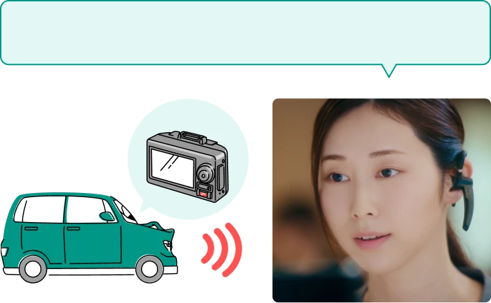 - 「ドライブレコーダーによる事故発生の通知等に関する特約」をセットしていただく必要があります。「業界最高水準」とは、損害保険業界において同様に提供されているドライブレコーダーと比較したものです(2025年4月時点・当社調べ)。 各種機能・仕様は変更となる場合がございます。