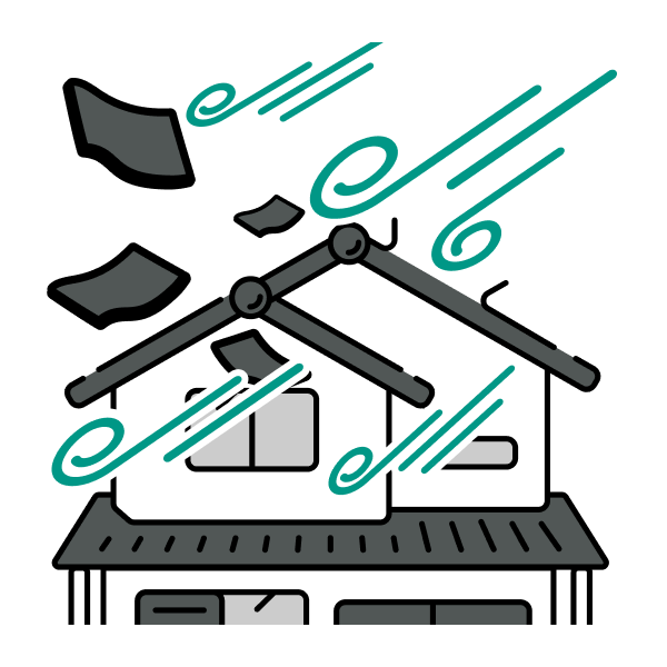 台風、旋(せん)風、竜巻、暴風等の風災による建物や家財への損害に対して保険金をお支払いします。