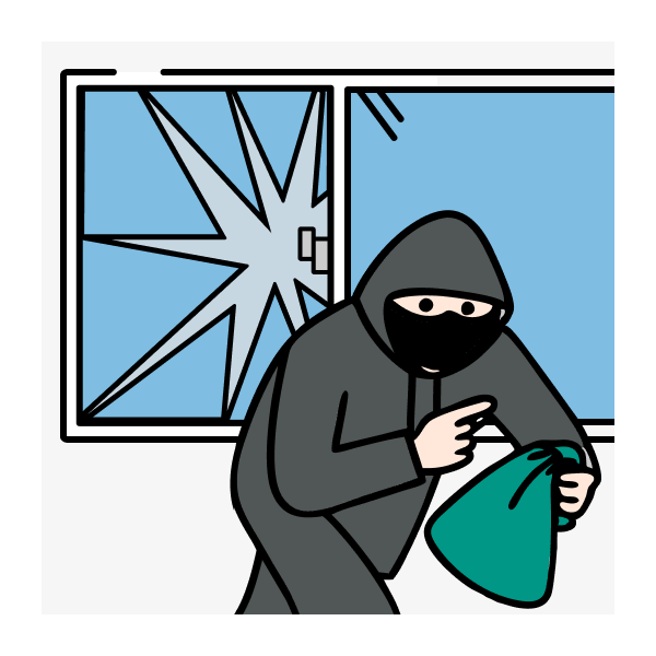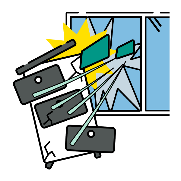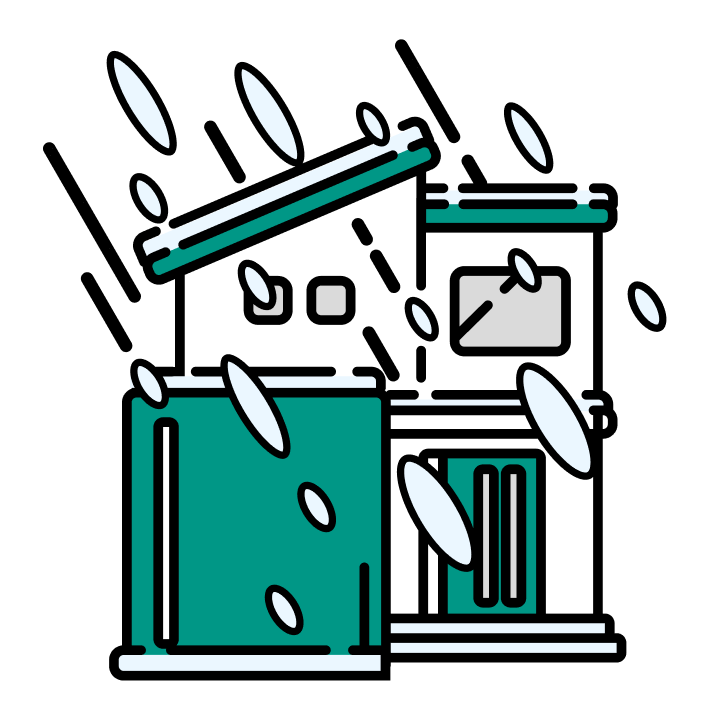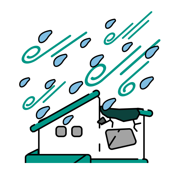 暴風による屋根材、看板、木などの飛来物によって屋根や窓ガラスが壊れた場合も補償します。