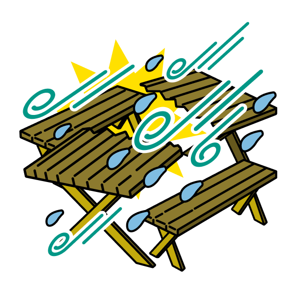 台風により、庭の家財が壊れた