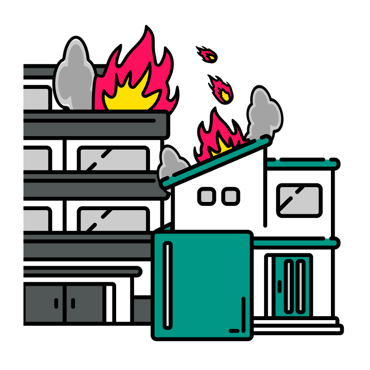 自宅が火元の火災だけではなく、隣家からのもらい火による損害も補償します。