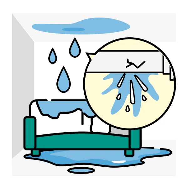 雨漏りにより、室内が水びたしになった