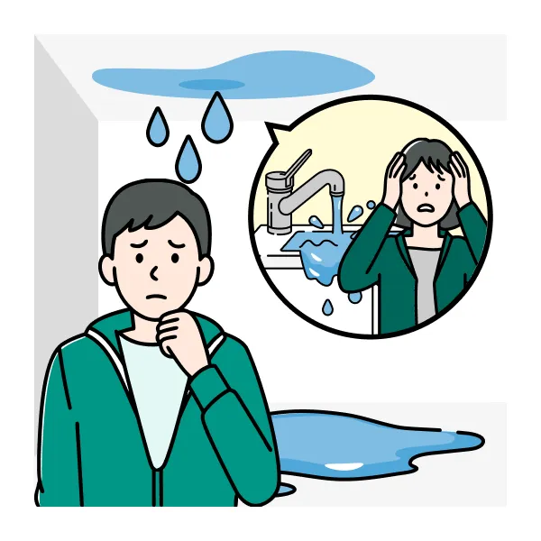 ご自宅の事故以外にも、マンションの上階からの漏水など、ご自身では防ぐことが難しい場合もあります。