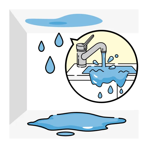 トイレや洗濯機の給排水設備の破損により発生した漏水など、日常に潜むアクシデントによる損害を補償します。