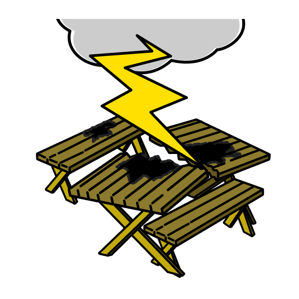 落雷により、庭の家財が壊れた