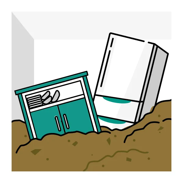 床上浸水が発生した場合、床や壁、電気設備だけではなく、家具や家電製品まで被害が及びます。