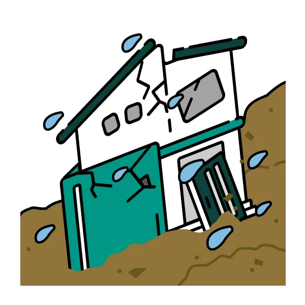 台風、暴風雨、豪雨等が原因で発生する、洪水・高潮・土砂崩れ・落石等による建物や家財への損害に対して保険金をお支払いします。