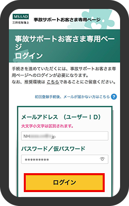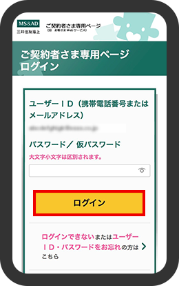 「ご契約者さま専用ページ/事故サポートお客さま専用ページ」へログイン