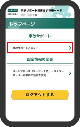 「事故サポートお客さま専用ページ」