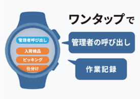 スマートウォッチに表示された作業項目を選択するだけで、簡単に作業記録を行えます。すべてのデータはクラウドに保存されるため、いつでも集計や分析に活用できます。
