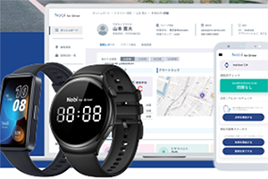 専用スマートウォッチを活用した、健康起因自動車事故防止ソリューションです。