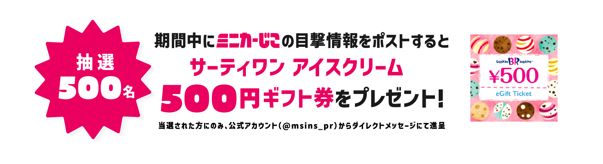 ご応募いただいた方の中から厳正なる抽選を行い、500名様にサーティワン アイスクリーム 500円ギフト券をプレゼントいたします。
