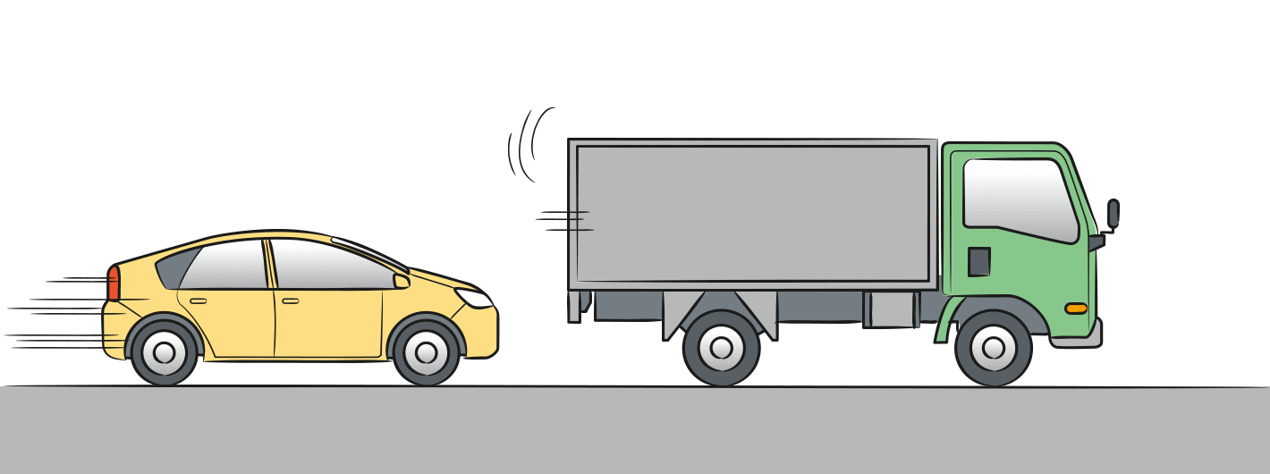 しかし、大型車を追い越すときは要注意! 大型車の陰に入ると、急に風がなくなるために自分の車が大型車の方に引き寄せられるような状態に。