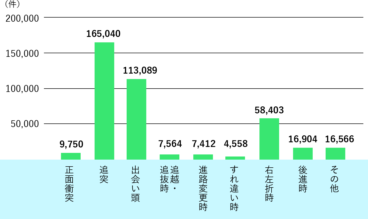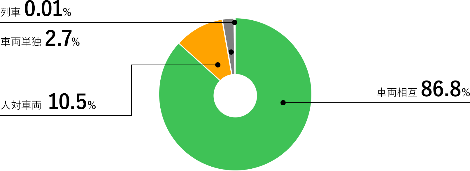 事故類型では車両相互が約87%、人対車両が約11%、車両単独が約3%となっています。